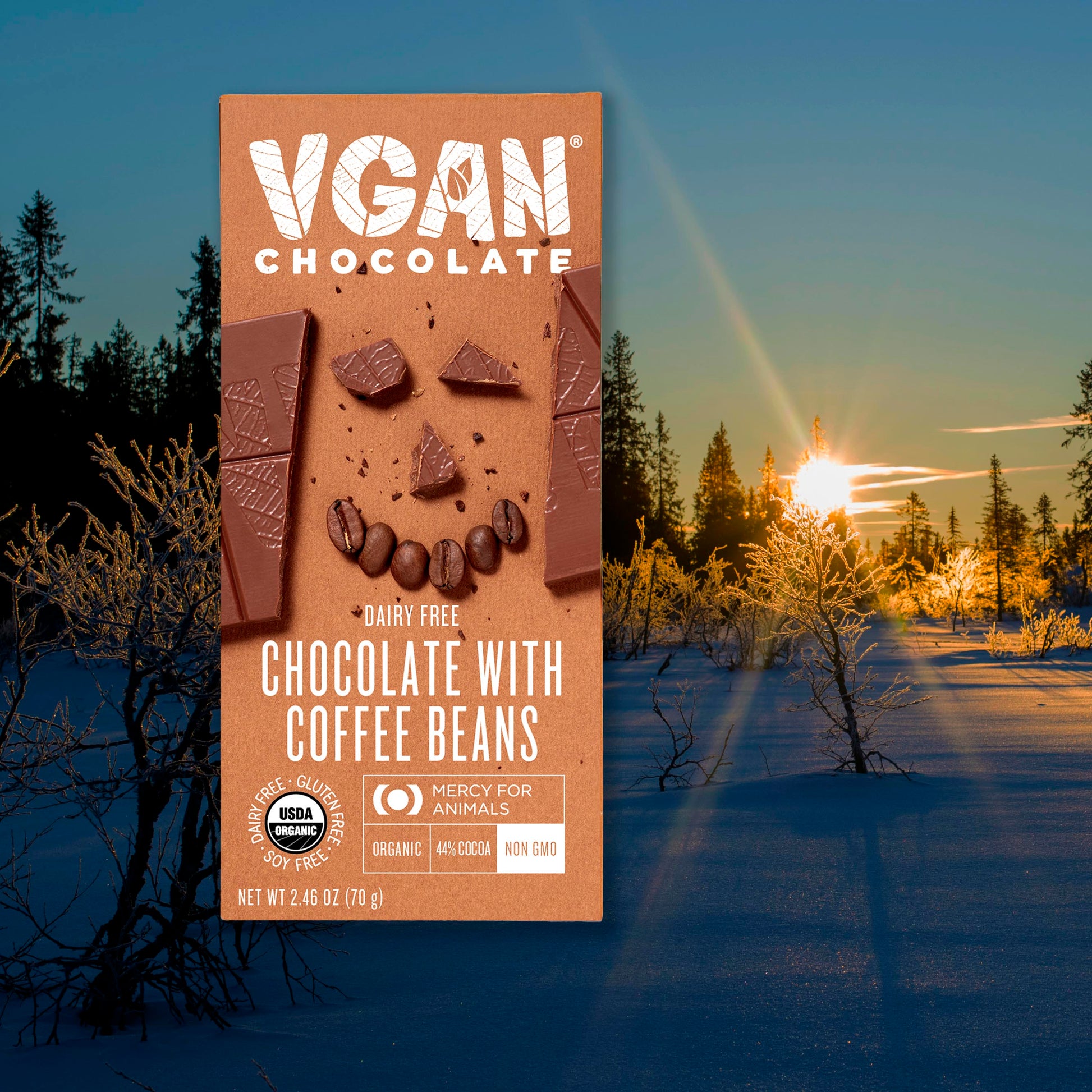 Introducing our organic vegan chocolate with crunchy coffee beans. Velvety chocolate, rich coffee undertones, and the satisfying crunch of premium coffee beans.